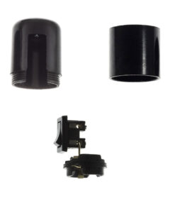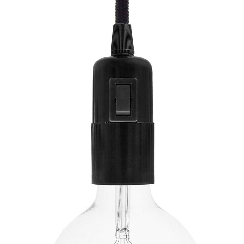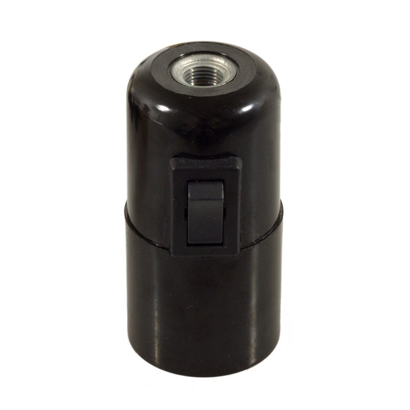 Bakelitová objímka E27 s vypínačom v čiernej farbe. Vypínač umožňuje zapínanie a vypínanie svetla priamo na objímke, vďaka čomu z nej môžete vyrobiť závesnú alebo stolnú lampu s vlastným spínačom. Vyrobená v Taliansku a je certifikovaná v súlade s najprísnejšími európskymi normami (IMQ-ENEC).