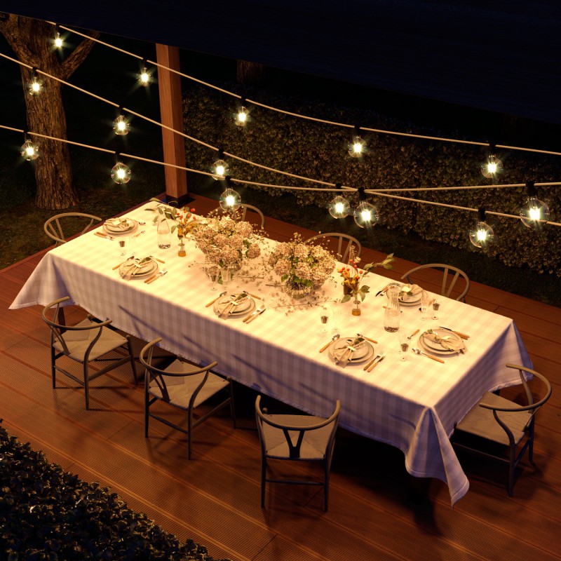 Svetelné reťaze a šnúry sú skvelým spôsobom, ako rozjasniť a oživiť Vašu záhradu, altánok, terasu, balkón…Dajú sa rovnako dobre využiť aj v interiéri na slávnostné udalosti. Svetelné reťaze sú prispôsobené na použitie v exteriéri. S týmito očarujúcimi farbami a textíliami získate všetko, čo potrebujete na dosiahnutie dokonalej atmosféry pre Vašu záhradu alebo domácnosť.