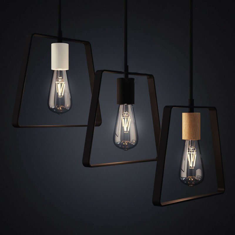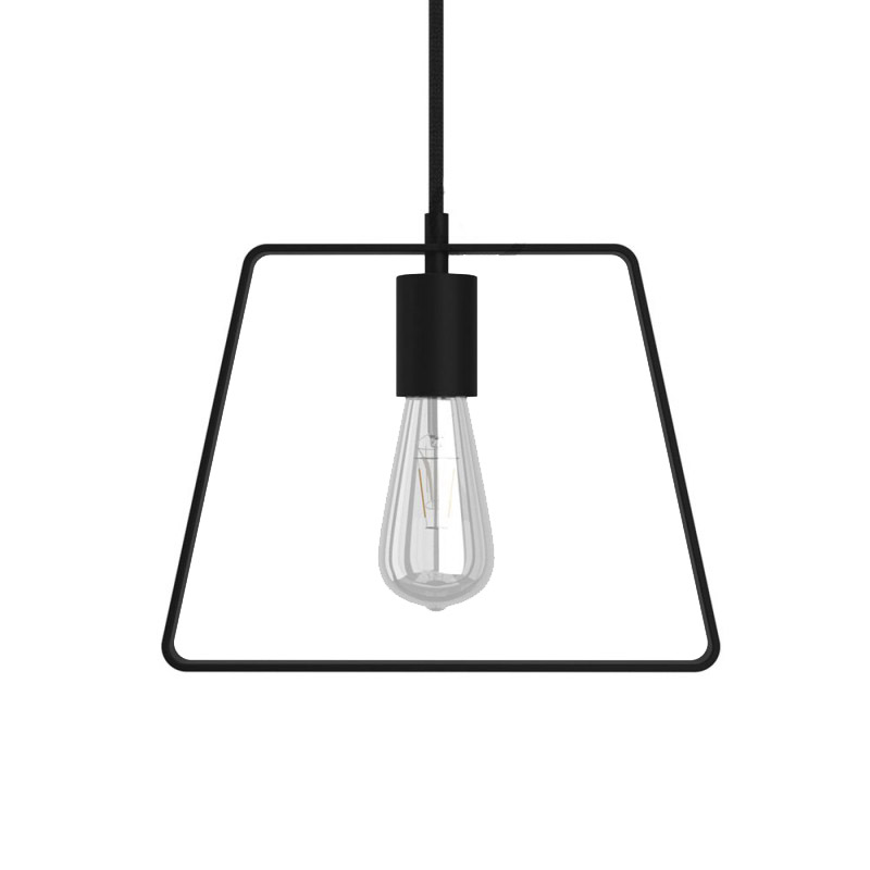 Kovové tienidlo tvoria čisté línie jednoduchých geometrických tvarov, ľahká konštrukcia, 2D efekt a odokrytá objímka a žiarovka pre dosiahnutie čo najväčšej svetelnosti. Lichobežníkový tvar tienidla je vyrobený z kovu s farebnou úpravou a je dodávaný spolu s E27 objímkou a farebnou kovovou krytkou. Vhodné do podnikov alebo bežných domácností.