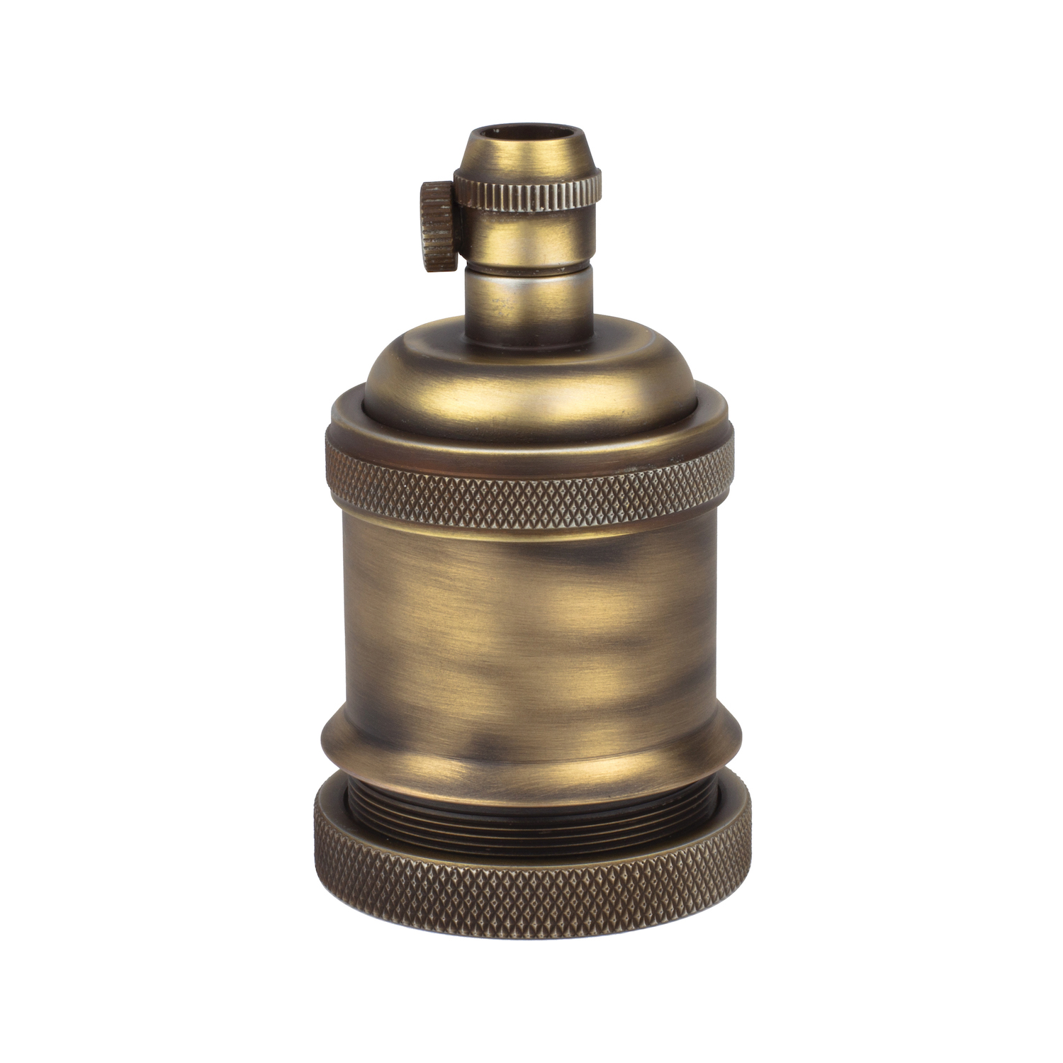 Historická kovová objímka s kovovým držiakom kábla na žiarovky s päticou E27. Predstavujeme vám masívny komponent v starodávnom štýle pre Vaše svietidlo. Ideálna do miestnosti s historickým nádychom. Nastaviteľná skrutka na odlahčenie vodiča (kábla). Táto jedinečná industriálna objímka je kompatibilná so všetkými našimi káblami (okrem retro lanových káblov) a žiarovkami s päticou E27. Vynikajúca kvalita a dokonalý retro dizajn.