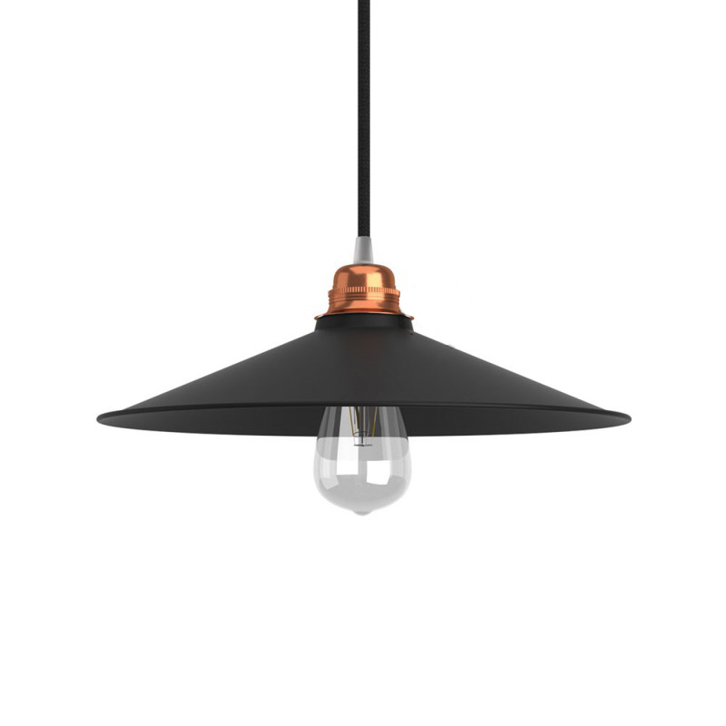 Retro kovové tienidlo v matnej čiernej farbe, priemer 30cm. Dokonalé zapadá do podkrovných bytov, reštaurácií alebo hotelov. Dodáva ideálny nádych farby k čiernym a bielym stenám. Tvar tienidla je minimalistický, takže nebude svojou farbou kaziť vzhľad, ale pritiahne oko každého zvedavca.