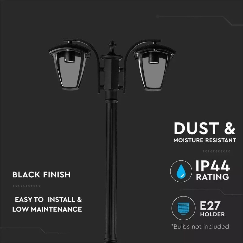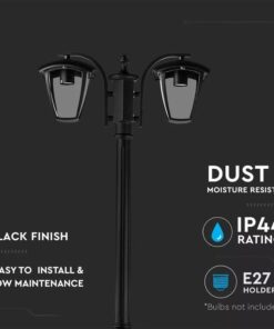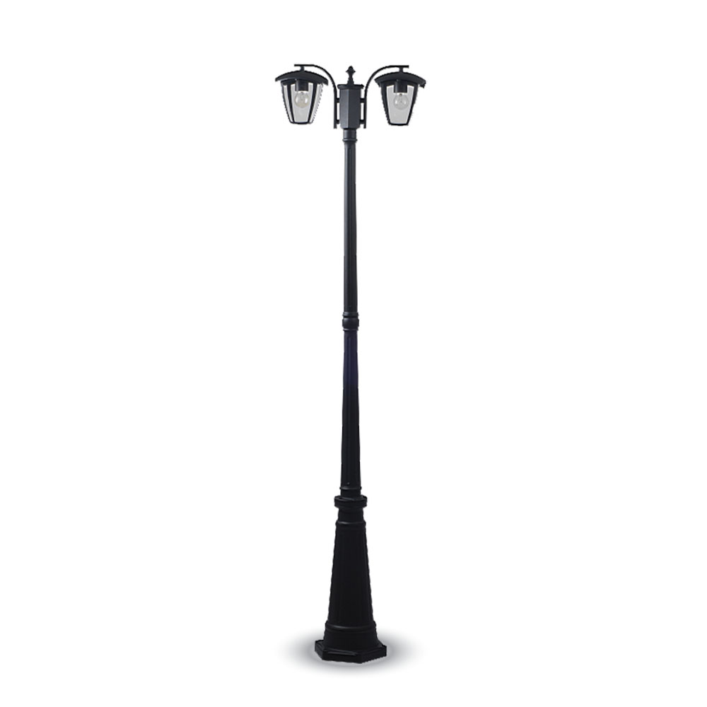 Stojanová záhradná historická lampa BIG DOUBLE POLE v čiernej farbe je dekoračné svietidlo na vonkajšie použitie v historickom štýle. Svietidlo sa pripevňuje na zem alebo múrik s IP krytím pre vonkajšie použitie. Svietidlo je vhodné do záhrady. Stĺpové exteriérové svietidlo je zárukou obdivu vašej záhrady. Toto historické svietidlo sa nesie v starodávnom duchu a zaručí obdiv vo Vašej záhrady. Je unikátne vďaka materiálu a historickému prevedeniu, ktoré neostane bez povšimnutia. Svietidlo je vyrobené na žiarovky s päticami E27, čo je najpoužívanejší typ pätíc žiaroviek v domácnostiach. Toto historické stojanové exteriérové svietidlo je vhodné pre milovníkov štýlového bývania. Dodá atmosféru ako keby ste žili na zámku alebo v staršej dobe, keď edison žiarovky boli úplnou novinkou. Ak chcete žiť štýlovo potom je toto historické svietidlo práve pre Vás.