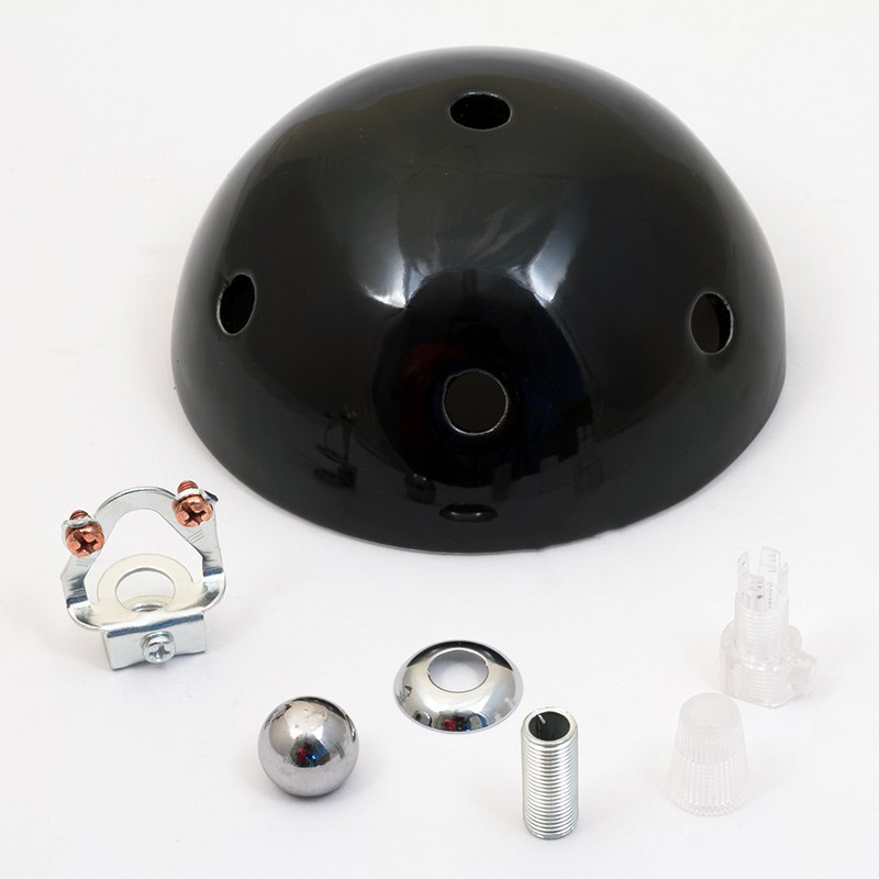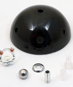 • Keramická rozeta, s priemerom 120 mm s kotviacim systémom pozostávajúcim z dutej závitovej rúrky, 1 priehľadnej káblovej svorky, závitovej konzoly na zavesenie, chrómovaného guľového terminálu (uplatnenie v prípade, že stredný otvor nebude použitý)