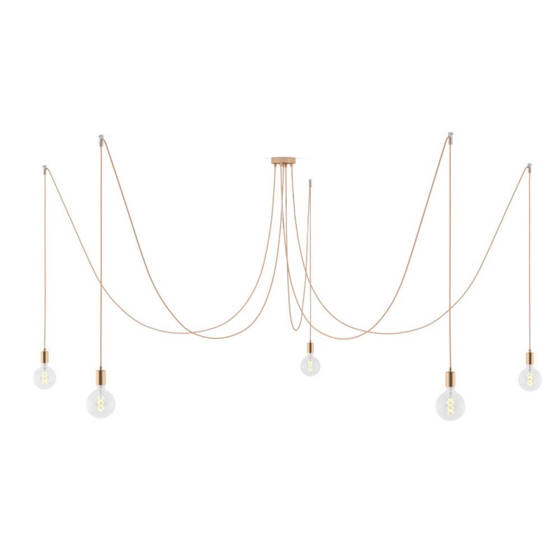 - 5 ks E27 objímok z termoplastu certifikovaných ENEC-IMQ s medenou valcovou kovovou krytkou. Maximálna záťaž je 105 W na každú objímku.