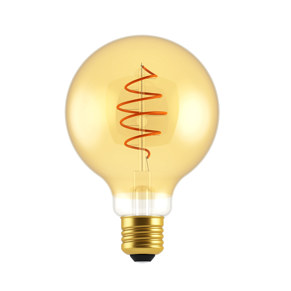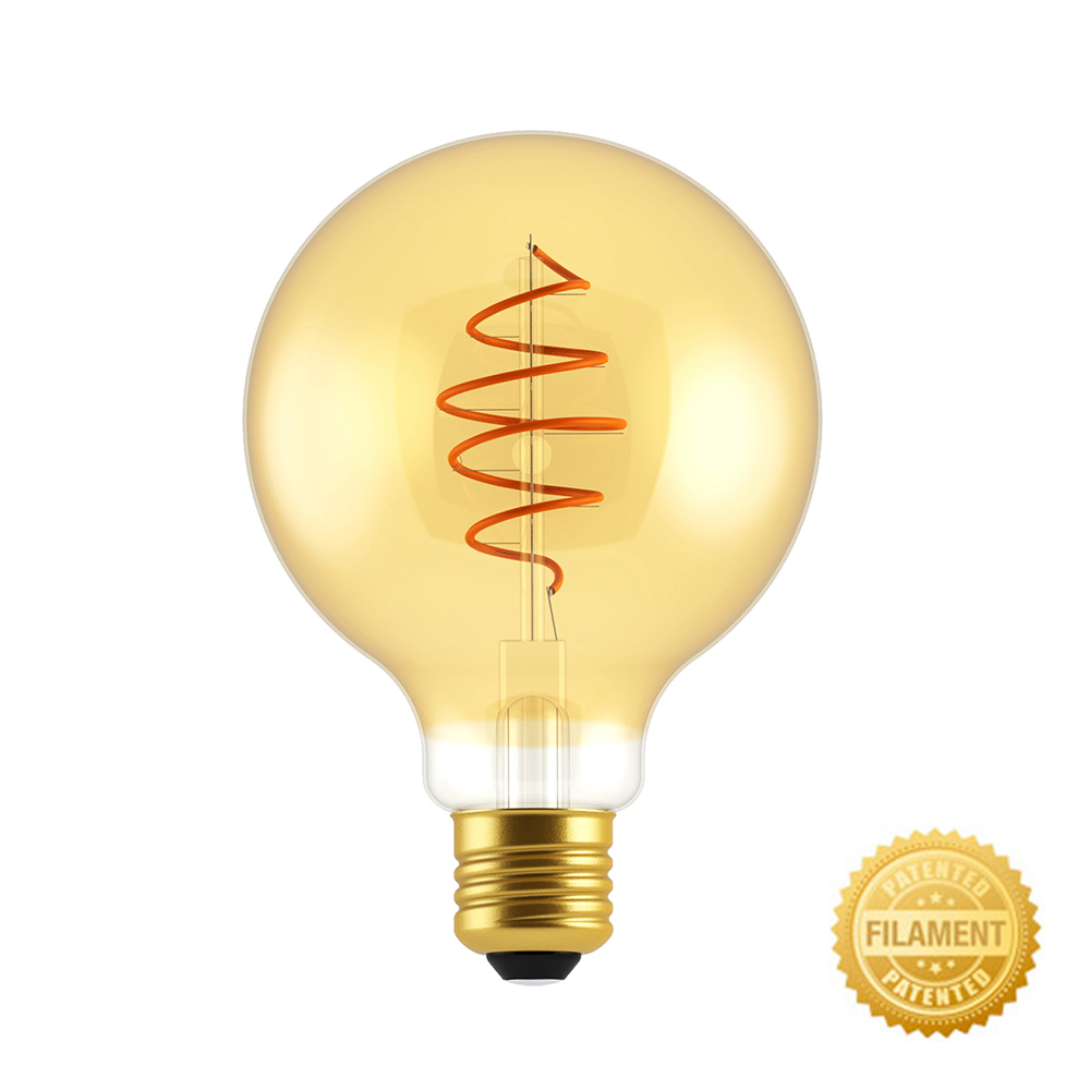 LED žiarovka s inovatívnym led lineárnym flexibilným atypickým tvarom croissantu. Mimoriadne patentované olovené vlákno vytvára jedinečné svetlo a dodáva jedinečný efekt prostrediu, jedinečnosť, relaxáciu a potešenie. Zlaté sklo tiež dodáva dotyk nezameniteľnej a elegantnej triedy. Vďaka týmto vlastnostiam sú žiarovky určené na osvetlenie všetkých typov prostredí, barov, reštaurácií, hál alebo domácností.